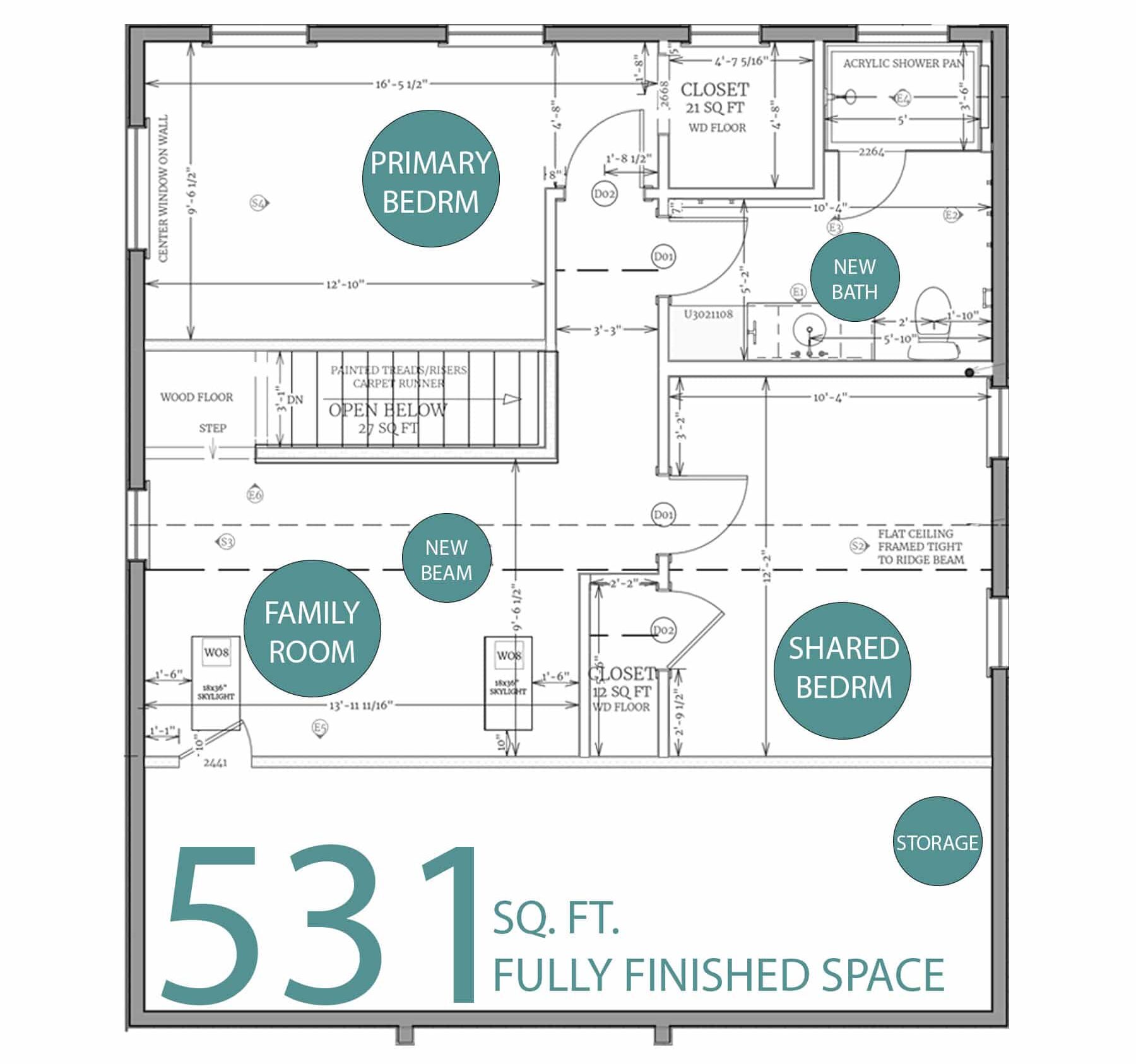Nicole: Many times it’s driven by wanting a bathroom upstairs. A bathroom has some very critical points that require a head height of 6’8” (by the toilet, above the vanity, and in the shower), and most attics can’t accommodate that height in those key spots without a full or partial shed dormer.
