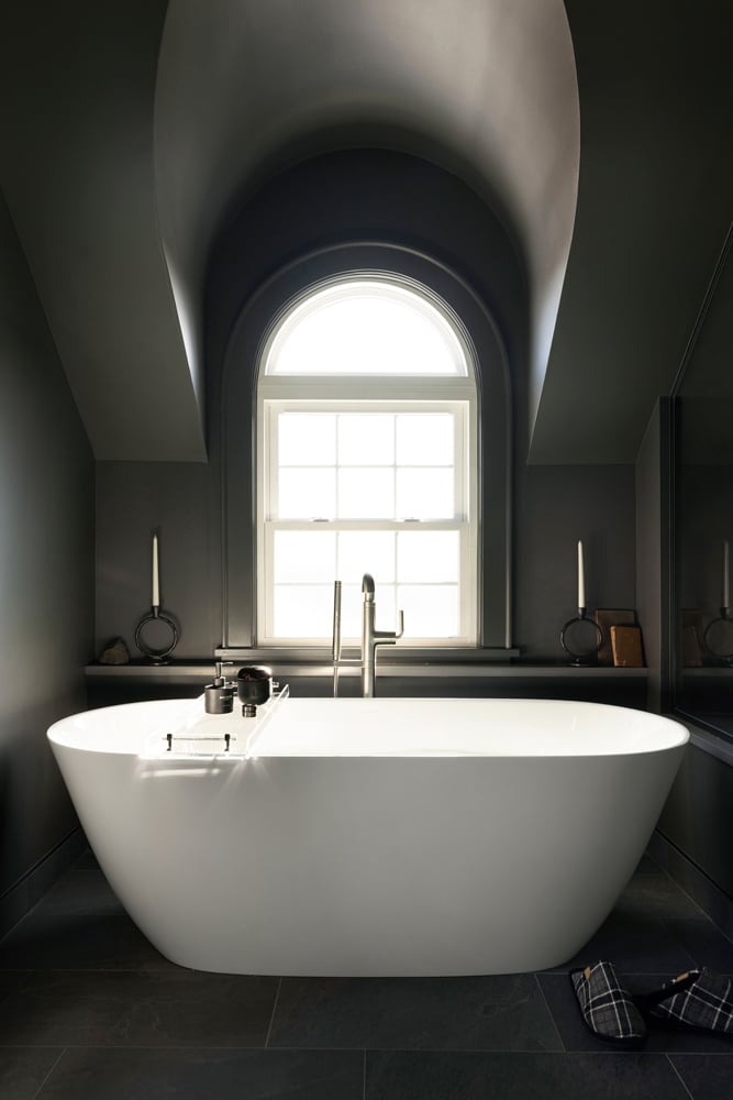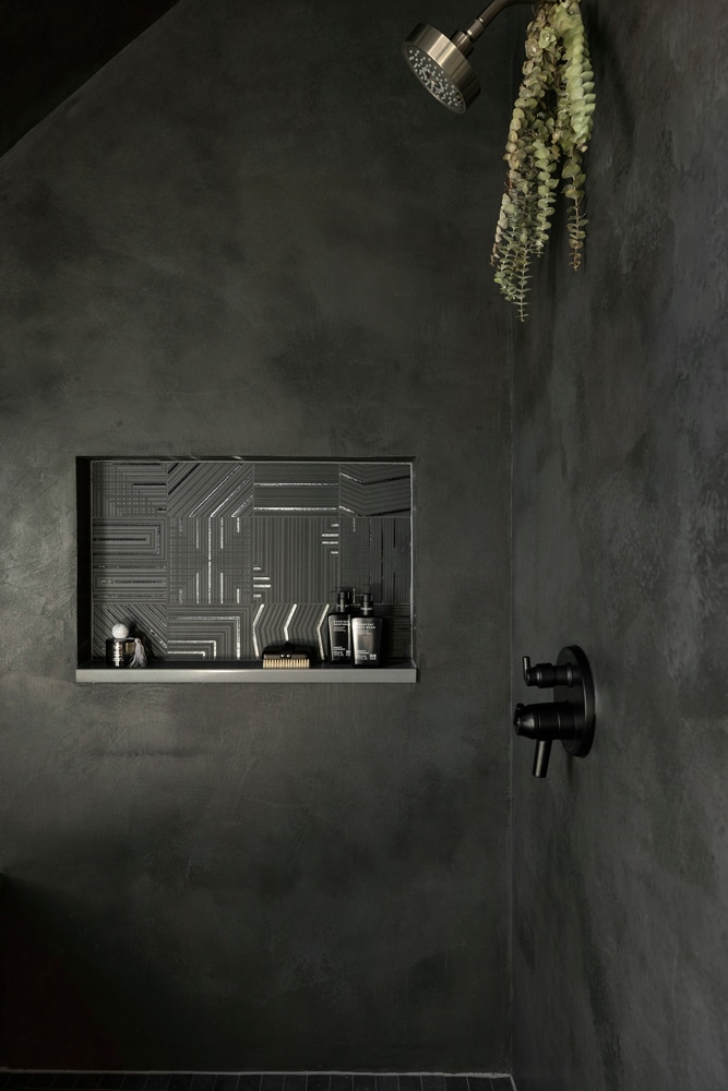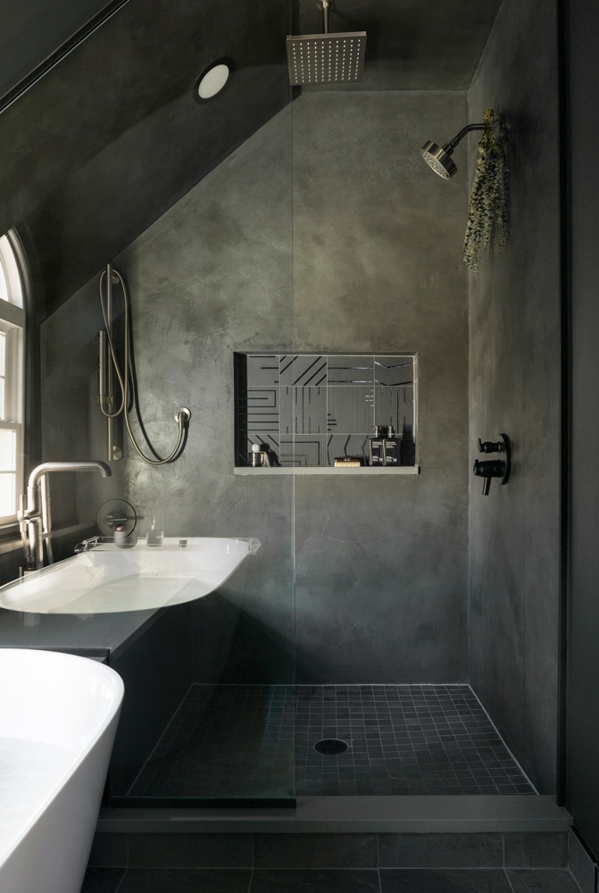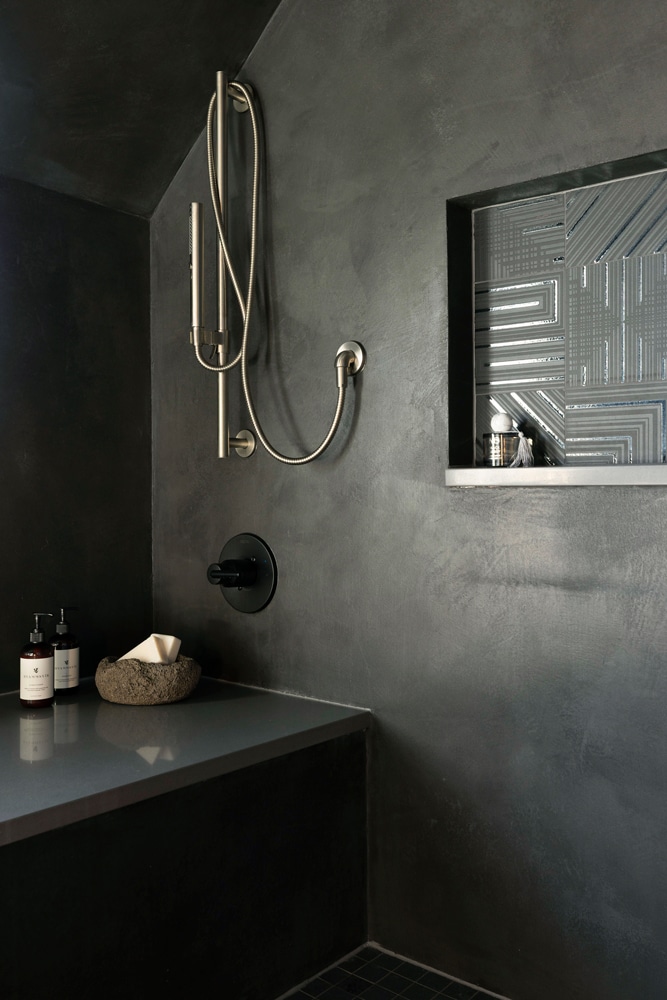 “The design inspiration for this space came from a spa the clients frequently stay at in Iceland—dark, moody, and immersive. After reviewing imagery together, we knew the right material for the space was tadelakt, a traditional waterproof plaster ideal for wet environments.” – White Crane Designer
