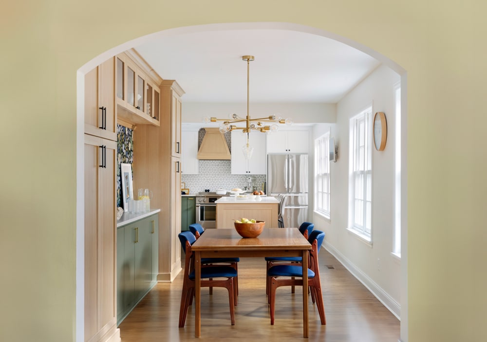 For this family of four, the kitchen of their Lynnhurst home is where life happens. Passionate about cooking and gathering with loved ones, these homeowners wanted a space that could truly become the heart of their home. Their existing layout felt disconnected and underutilized, with the kitchen and dining areas limiting both functionality and movement. By thoughtfully swapping the two spaces, we created an open and inviting layout centered around a generous island, where the entire Minneapolis family can comfortably gather. The reimagined design enhances cooking and prep zones while framing beautiful views of the backyard, all conveniently connected to the existing mudroom for seamless everyday living and effortless entertaining.