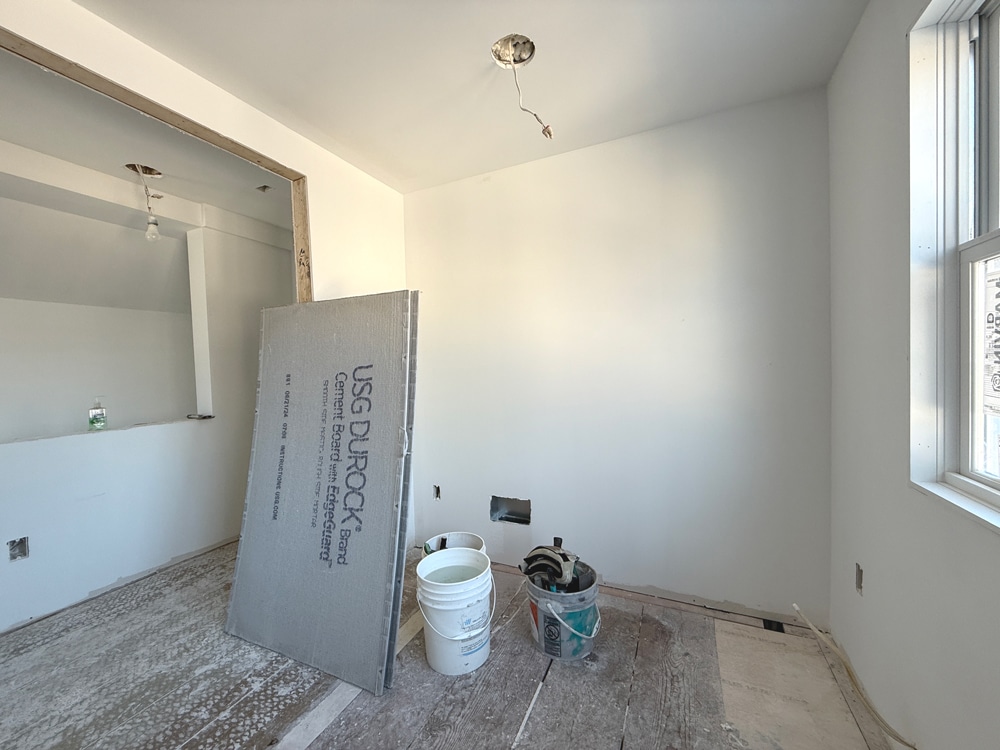 For our project managers, completing drywall means performing quality control checks and working with the team to resolve any visible issues, such as uneven corners, scratches, or dents. With the drywall approved, we cleaned the site before priming to help seal any remaining drywall dust on walls and ceilings.