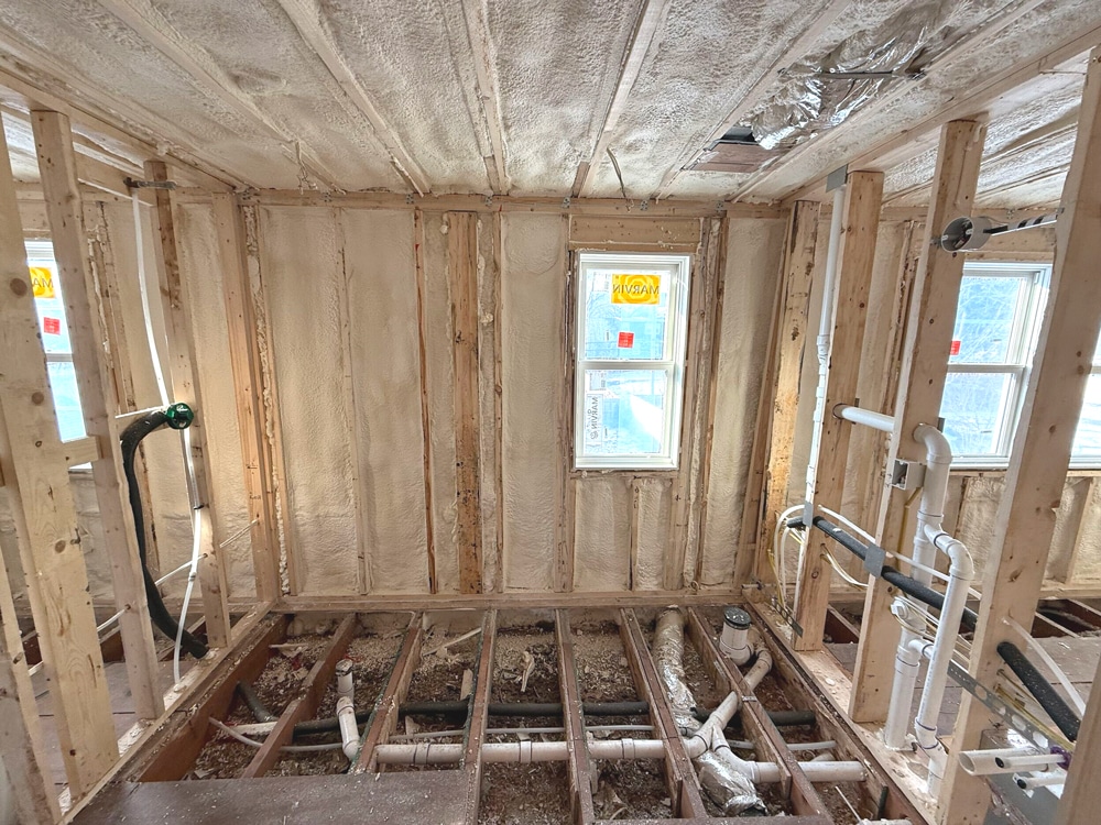 From the roof to the exterior and interior walls, the new insulation is a clear improvement over the newspaper insulation we found during demolition. Furthermore, thanks to the insulation strategies we’ve used, the home’s active heating and cooling systems will not have to work quite as hard to maintain consistent temperatures.
