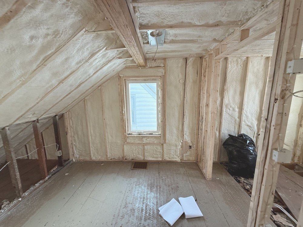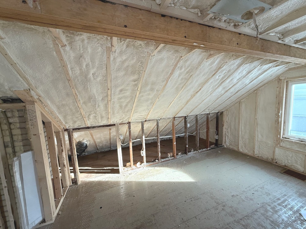 Given our homeowner’s experience in the space, where hot summers gave way to cold winters, we knew simply adding more forced-air wouldn’t solve the fundamental problem of an inefficient building envelope. We needed a comprehensive insulation approach that, alongside upgrades to the active systems, would properly condition the entire attic.