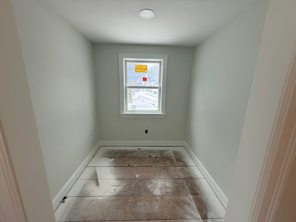 For select interior walls, like those in the new bedroom and bathroom, our crew used batt insulation—the pink fiberglass material most people recognize. While it also aids with temperature control, another benefit here is sound dampening.